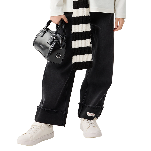 【balaOne】巴拉巴拉童装儿童裤子女童冬加绒牛仔长裤2025直筒裤