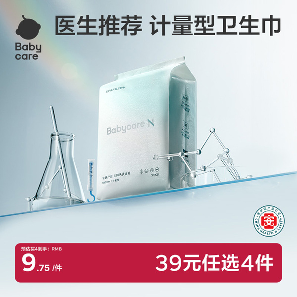 【买一送一含赠到手最多176片,170-111券-6.42淘金币(淘金币入口进)=到手价52.5,折0.29/片】babycare计量型产妇卫生巾!瞬吸干爽透气,无荧光0刺激,产妇专用加大,产后专用不勒刀口,超强吸收加长加大款,产妇的优质选择!