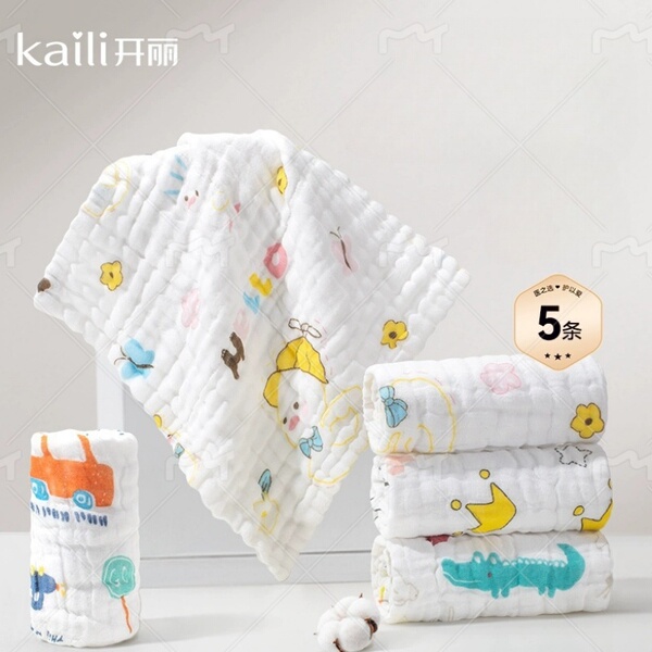 开丽纱布巾婴儿洗脸洗澡拍嗝巾小方巾5条