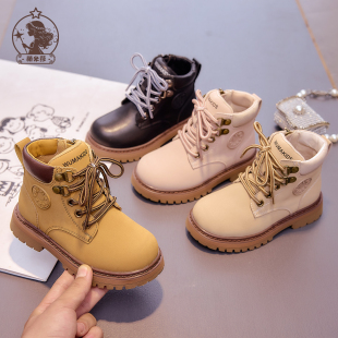 萌米莎秋冬季新款真皮靴子男女童新潮小黄靴